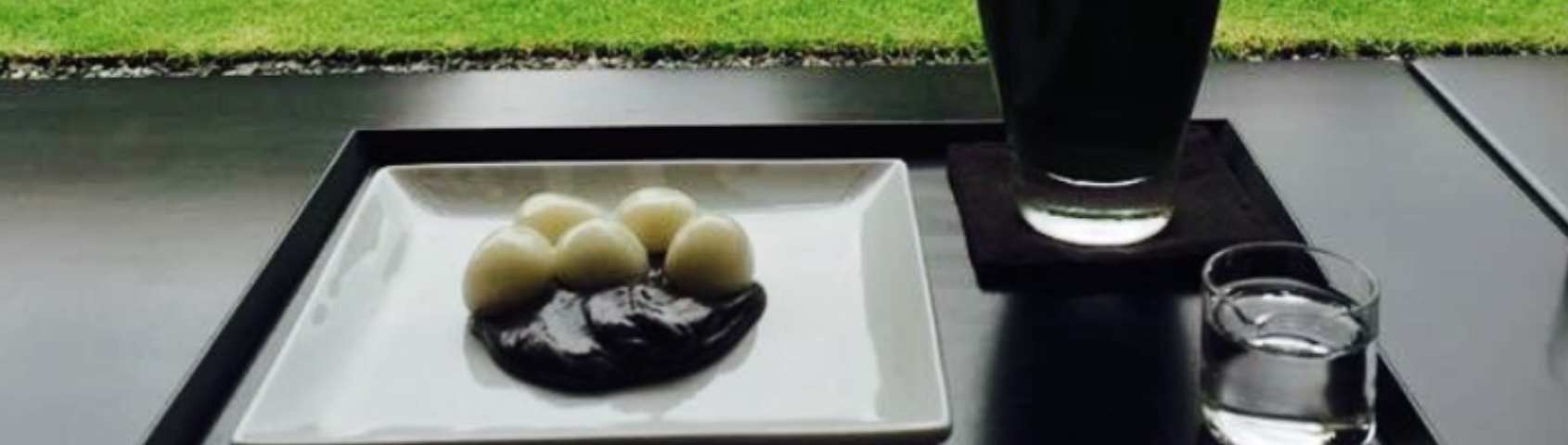 In a space that transcends time and space and evokes a timeless history, surrounded by a pleasant breeze and gentle greenery, I admire the beautiful, minimalist tableware and enjoy the marriage of the bittersweet matcha and the gentle sweetness of the sesame paste. “I am able to cherish this moment right now.” I felt as if the noise in my head was disappearing and my five senses were awakening.